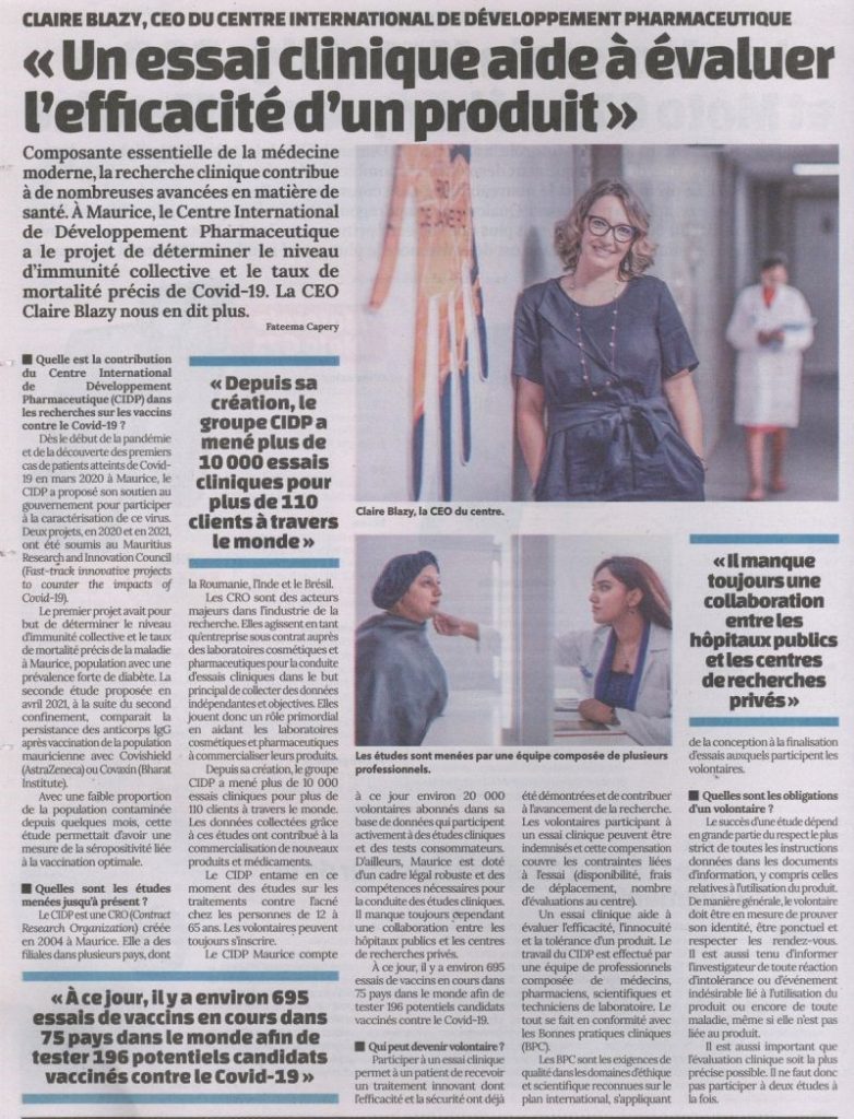 CEO’s Interview in Mauritian Newspaper