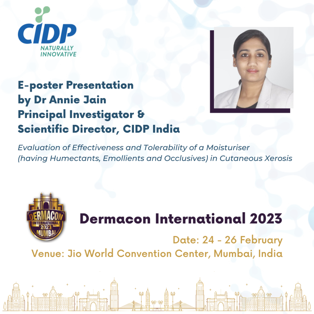 It gives us immense pleasure to announce that our paper in collaboration with Cipla titled “Evaluation of Effectiveness and Tolerability of a Moisturiser (Having Humectants, Emollients and Occlusives) in Cutaneous Xerosis” has been accepted for e-poster at the upcoming Dermacon International 2023 to take place from 24 – 26 February at Jio World Convention Center, Mumbai, India.